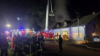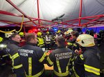 Der umfangreiche Löscheinsatz zeigte rasch Wirkung, das Feuer konnte schnell unter Kontrolle gebracht werden, das angrenzende Feuerwehrhaus wurde dabei nur leicht verraucht. Unter Atemschutz wurde das Gebäude belüftet und nach Glutnestern gesucht. Von außen wurde das Feuer im Nebengebäude mit mehreren Löschleitungen bekämpft. Die Nachlöscharbeiten liefen bis in die Morgenstunden. Alarmiert wurden insgesamt über 100 Kräfte von 11 Feuerwehren. Zahlreiche Atemschutztrupps standen bereit, falls das Feuer überzugreifen drohte.