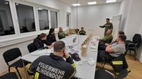 Zunächst setzten sich die Kameradinnen und Kameraden mit dem Inhalt des Erste-Hilfe-Koffers auseinander. Jedes Material wurde einzeln begutachtet, Unterschiede zwischen den verschiedenen Varianten besprochen und die richtige Anwendung erklärt. So wurde Wissen aufgefrischt und der sichere Umgang mit dem Material gefestigt.