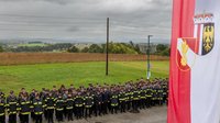 Der feierliche Höhepunkt folgte am Sonntag beim Frühschoppen. Gemeinsam mit benachbarten Feuerwehren, unserer Partnerfeuerwehr FF Kruckenberg aus Bayern sowie der Marktmusikkapelle Ried in der Riedmark marschierten wir feierlich ein.