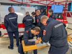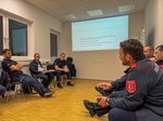 Im weiteren Verlauf wurde ein Stationsbetrieb eingerichtet. Florian Kühr wiederholte an seiner Station zentrale Schritte im Einsatzablauf – von der Alarmierung über die Ausrückung bis hin zu den Tätigkeiten am Einsatzort. Gemeinsam wurden verschiedene Punkte diskutiert und weiter optimiert, um im Einsatzfall optimal vorbereitet zu sein. Im Bereich „S2-Lageführung“ erläuterte Andreas Mayrhofer und Richard Huber die Aufgaben dieser zentralen Unterstützung für die Einsatzleiter und stellte wichtige Grundlagen einer strukturierten Lageführung vor. Danach konnten die Teilnehmenden das Gehörte direkt anwenden: In einem kurzen Planspiel zu einem Brandeinsatz wurde die Lageführung praktisch trainiert.