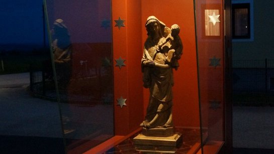 Die Idee und Errichtung der Marienkapelle „Maria, Stern des Weges“, entstand im Zuge der Planungen zum jetzigen Feuerwehrhaus. Früher stand auf dieser Höhe der Hinterkörner-Bildstock, der von der Ausgestaltung bereits ein schöner Platz und vermutlich der Marienverehrung diente. Der in die Jahre gekommene Bildstock wurde in den 80-iger Jahren durch ein Marienfenster in der Fassade des Feuerwehrhauses ersetzt.