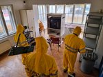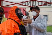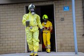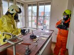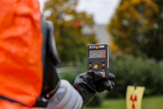 Bei der zweiten Station stand ein Laborunfall im Mittelpunkt. Hierbei wurde ein bewusstloser Labormitarbeiter von einer Reinigungskraft aufgefunden. Die Einsatzkräfte durchsuchten das Labor auf nuklide Stoffe, lokalisierten diese und sperrten den Bereich ab. Auch die betroffene Reinigungskraft wurde mithilfe der ADK-K/Flächensonde auf mögliche Kontamination überprüft.